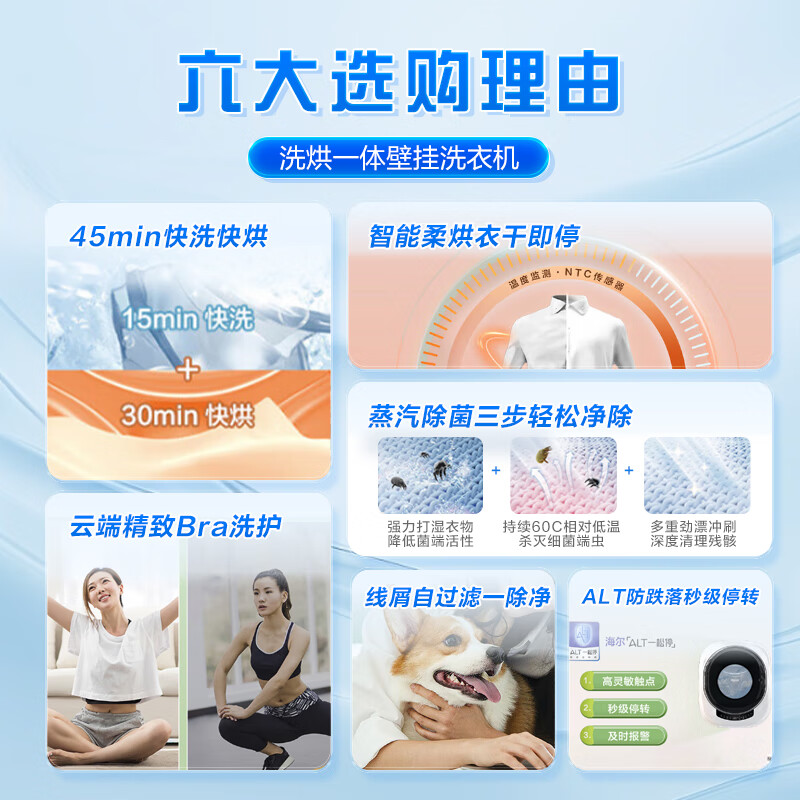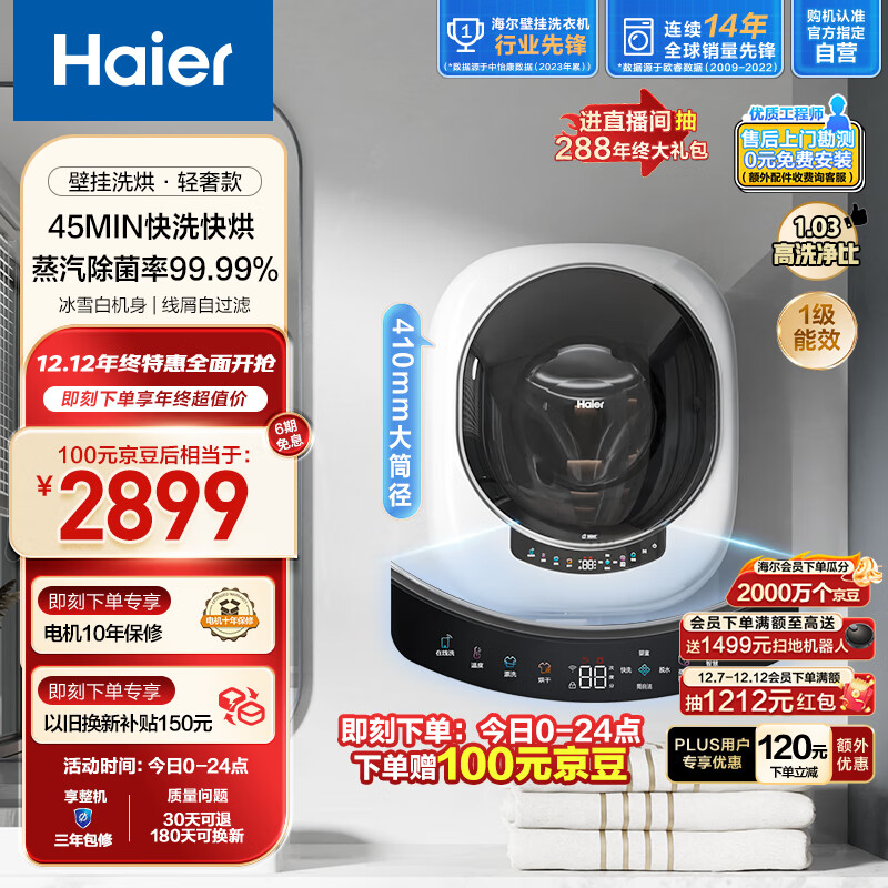 海尔(Haier)壁挂洗衣机 洗烘一体全自动 迷你婴儿洗衣机 内衣洗衣机 3公斤高温除菌螨 以旧换新 智能柔烘715U1价格:2999.00元!