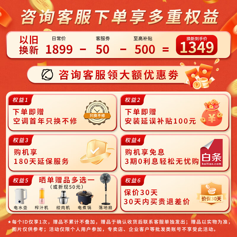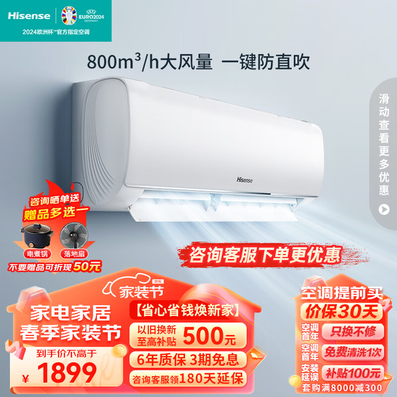 海信(Hisense)大1匹空调挂机 新一级能效节能省电 变频冷暖大风量防直吹 卧室壁挂式 KFR-26GW/E290-X1 以旧换新价格:1899.00元!