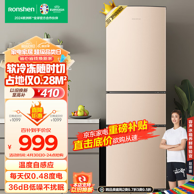 容声(Ronshen)206升三门小型电冰箱中门软冷冻三温区保鲜节能低噪家用租房宿舍小巧不占地BCD-206D11N价格:999.00元!