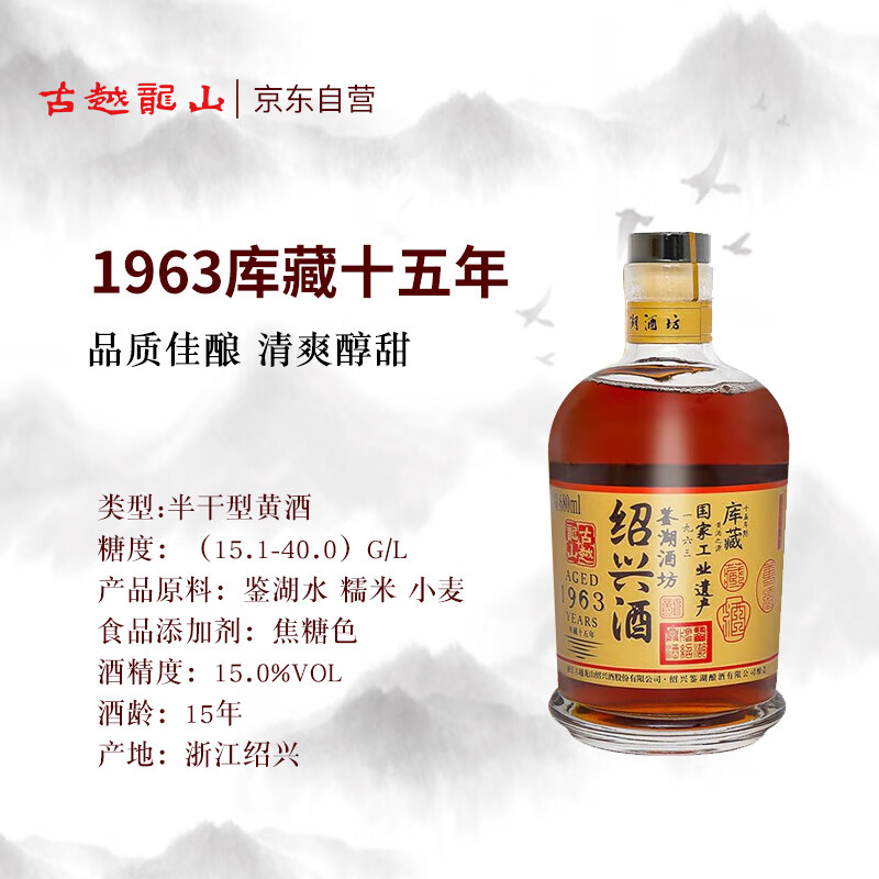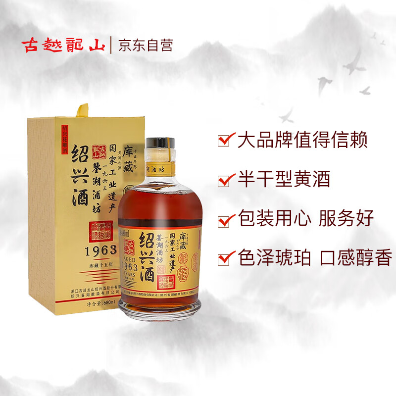 古越龙山 鉴湖酒坊1963 十五年 传统型半干 绍兴 黄酒 680ml 单瓶装价格:178.00元!