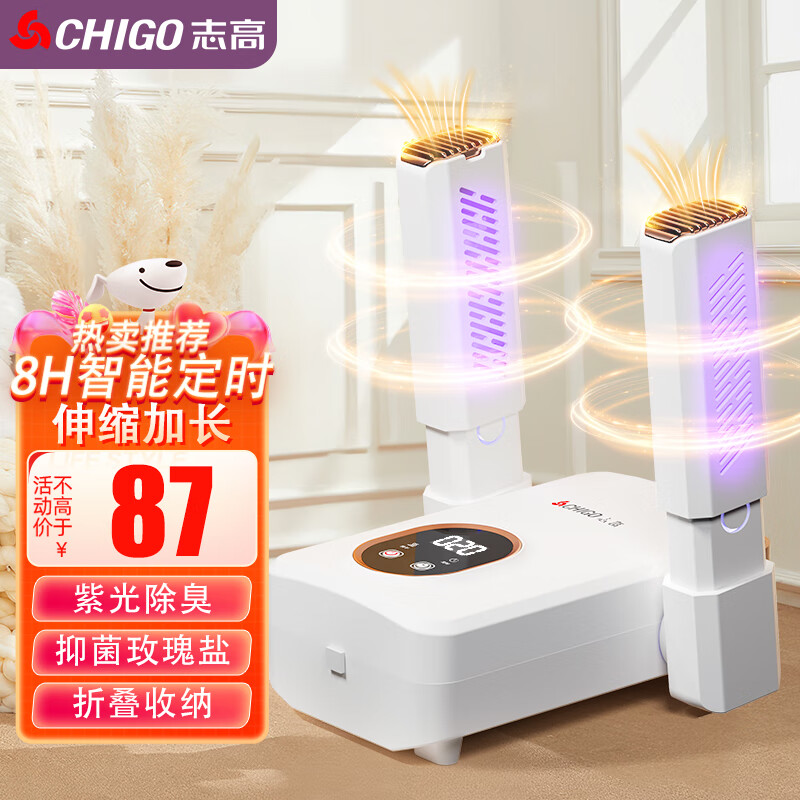 志高(CHIGO)烘鞋器干鞋器暖鞋器 家用紫光除臭烘鞋神器鞋子烘干器烤鞋器烘鞋机可伸缩折叠XJ-006价格:87.00元!