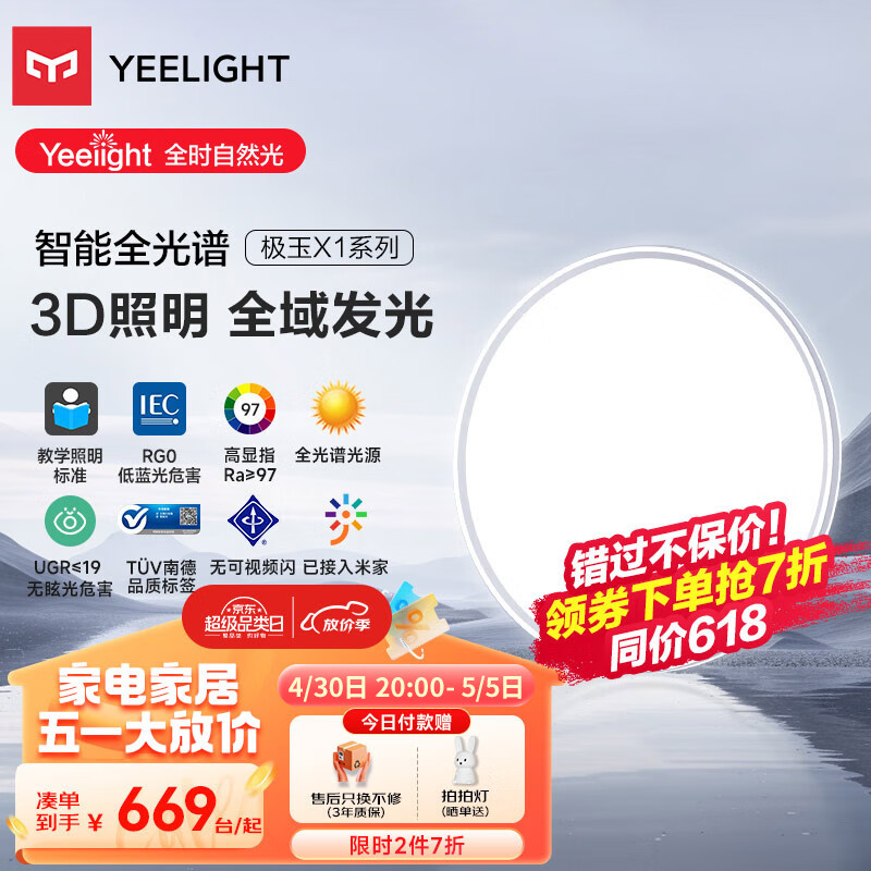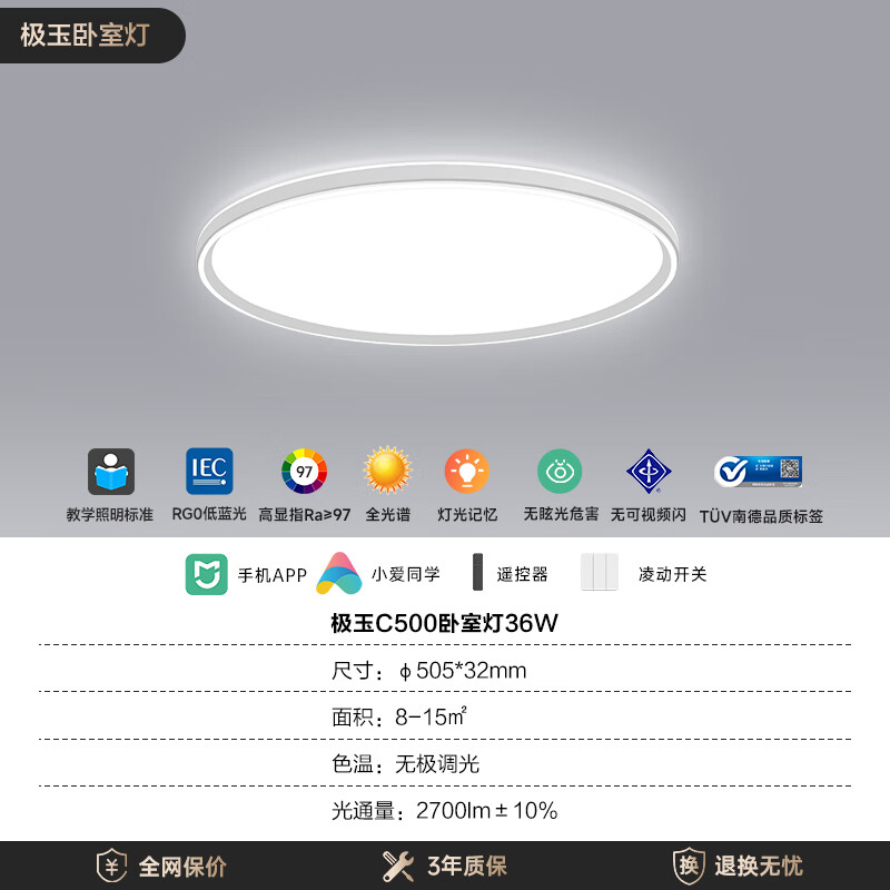 Yeelight易来led全光谱吸顶灯客厅餐厅超薄低蓝光现代简约卧室灯极玉C500价格:999.00元!