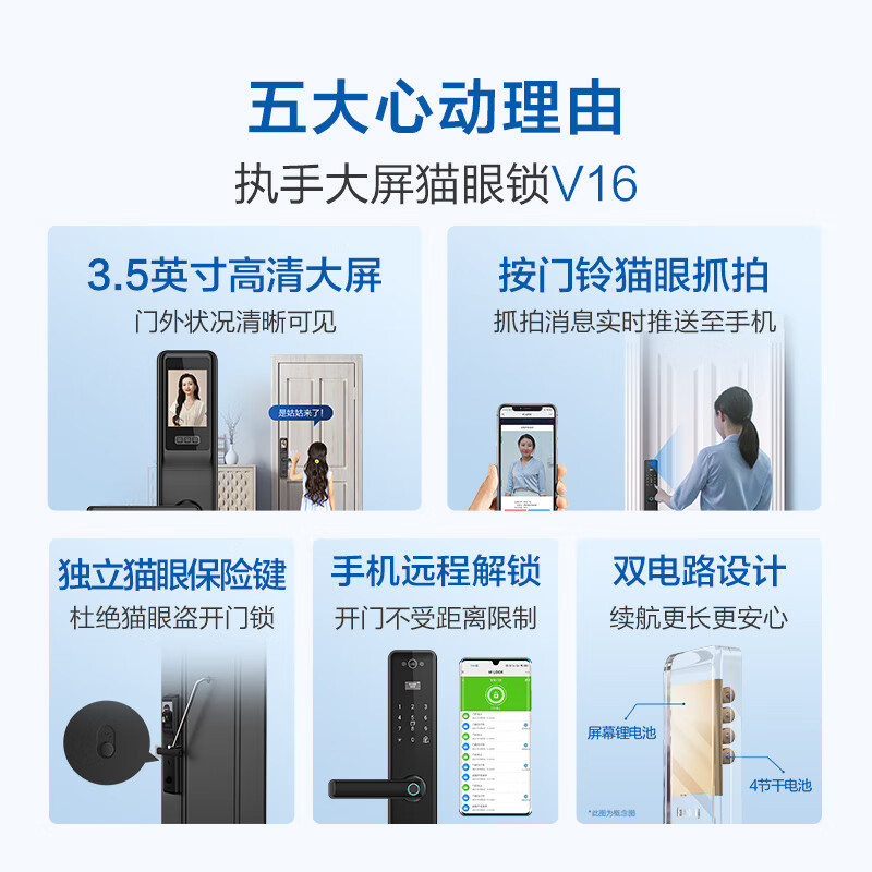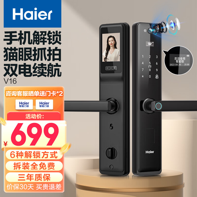 海尔(Haier)指纹锁智能门锁密码锁可视猫眼智能锁带监控摄像头HFH-16V-U1价格:1299.00元!