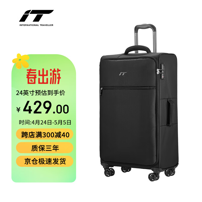 INTERNATIonAL TRAVELLER英国IT拉杆箱托运旅行箱万向轮超轻行李箱24英寸软布箱1191黑色价格:499.00元!
