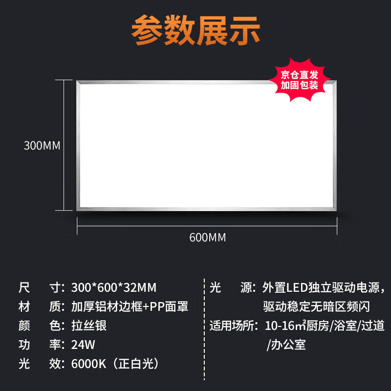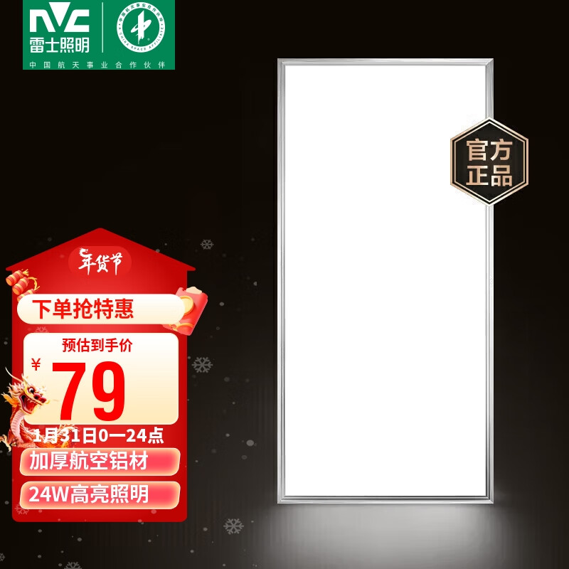 雷士(NVC)厨房灯 led集成吊顶厨卫灯吸顶灯 铝扣板卫生间平板灯 面板灯24W价格:79.00元!