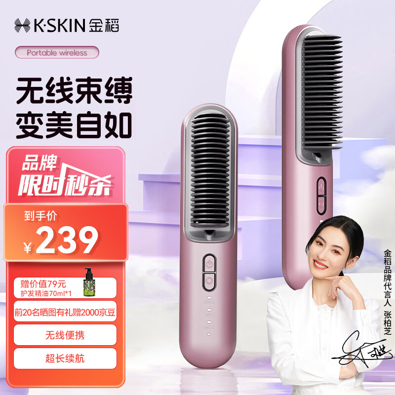 金稻无线直发梳便携六千万负离子护发造型夹板美发两用发梳电梳子直板夹充电款KD382S紫 生日礼物女价格:369.00元!