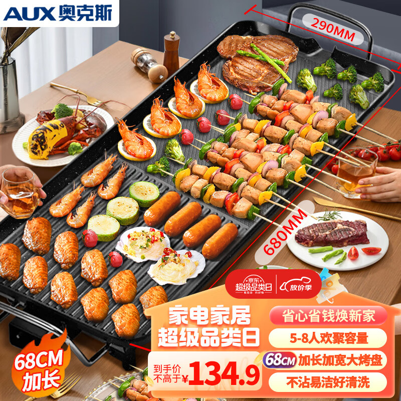 奥克斯(AUX)电烧烤炉 家用电烤盘烤串机不沾烤肉锅韩式煎肉锅电烤炉加大号 LA-KPTS02JD价格:134.90元!