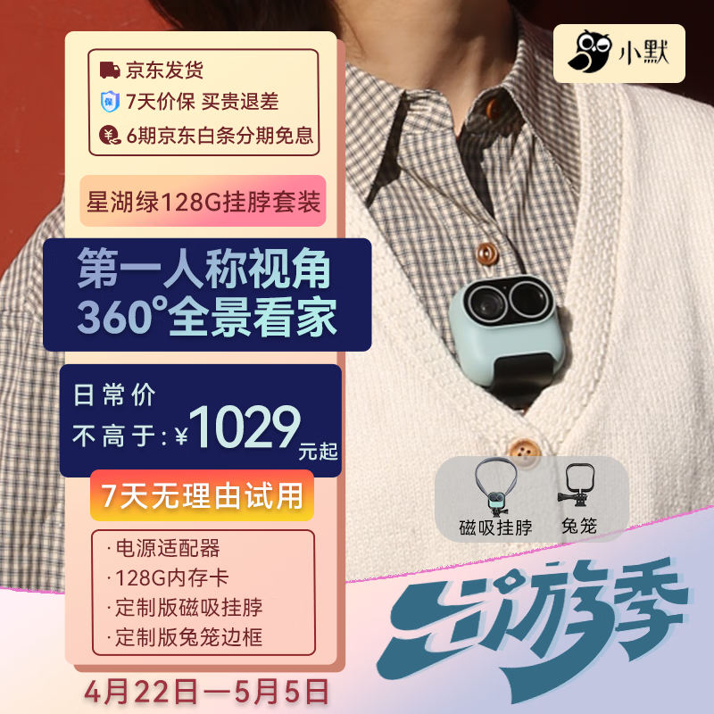 小默魔法相机vlog摄像机强力磁吸监控家用礼盒 骑行便携式运动相机 星湖绿128G挂脖套装价格:1029.00元!
