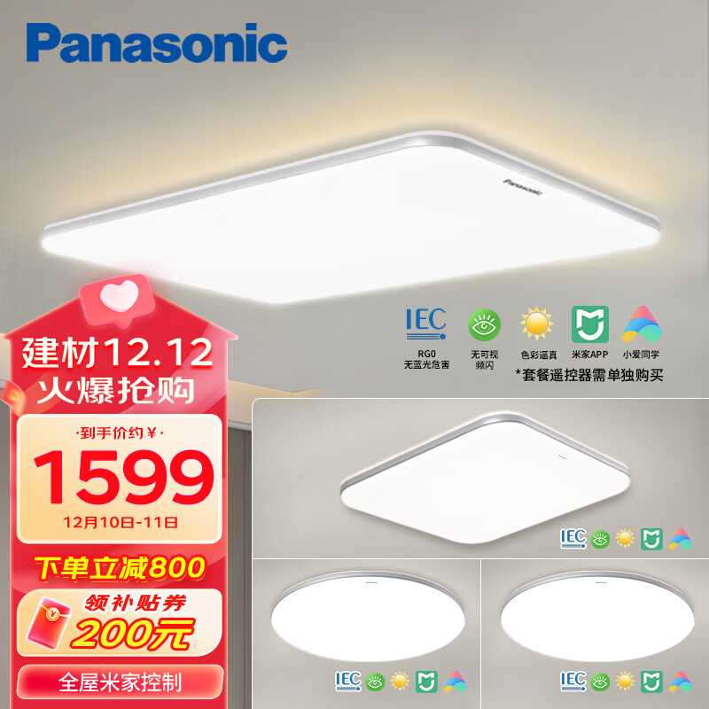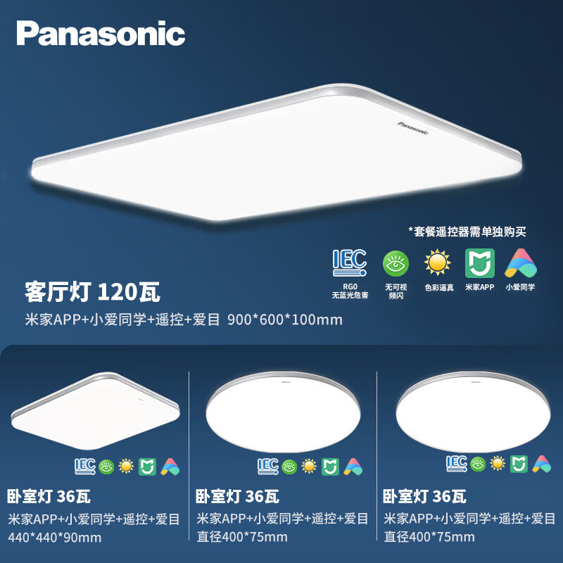 松下(Panasonic)客厅灯 LED吸顶灯米家智能控制灯具 三室一厅价格:2399.00元!