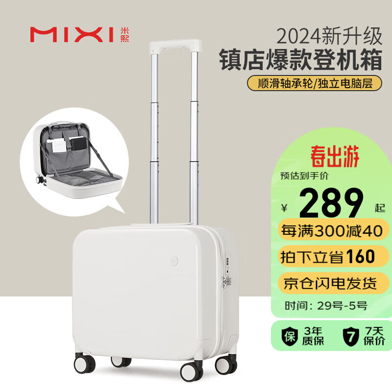 米熙高颜值登机箱小行李箱女拉杆箱子旅行箱女密码箱包18英寸烟白9236价格:449.00元!