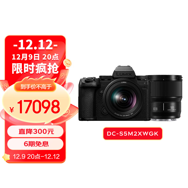 松下S5M2XWGK 全画幅微单相机 20-60mm+50mm镜头 (Panasonic)数码相机 约2420万有效像素 相位混合对焦价格:17098.00元!