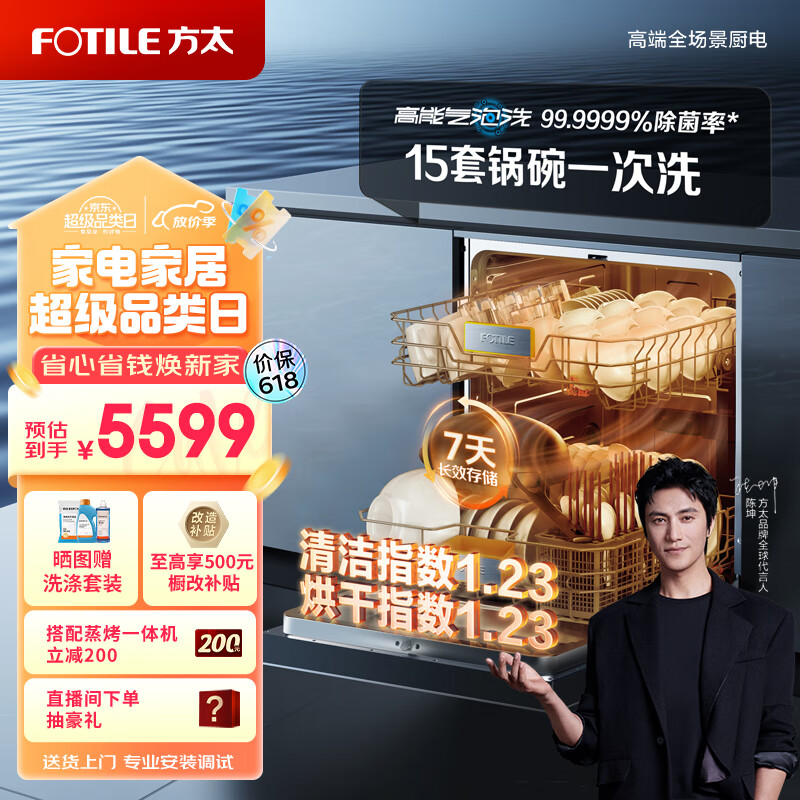 方太洗碗机V6系列嵌入式家用高能气泡洗 15套大容量洗锅不挑锅 加强除菌 7天长效存储 一级水效VJ06价格:5599.00元!