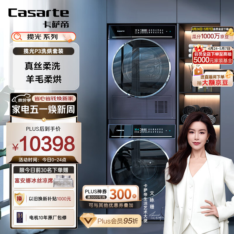 卡萨帝(Casarte)揽光P3洗烘套装 直驱滚筒洗衣机全自动+热泵烘干机 丝绸羊毛烘 换新 纤诺C1 10P3U1+CG 10FP3U1价格:10998.00元!