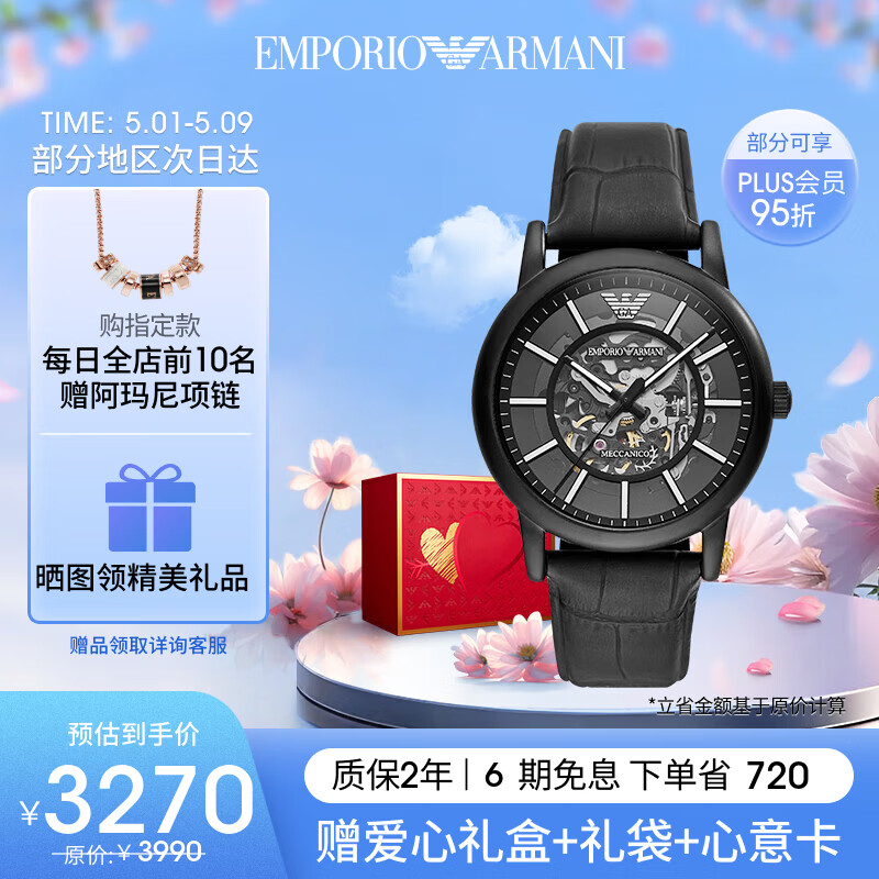 安普里奥·阿玛尼(Emporio Armani)手表男士 全自动镂空皮带机械表时尚送男朋友生日礼物 AR60008价格:3470.00元!