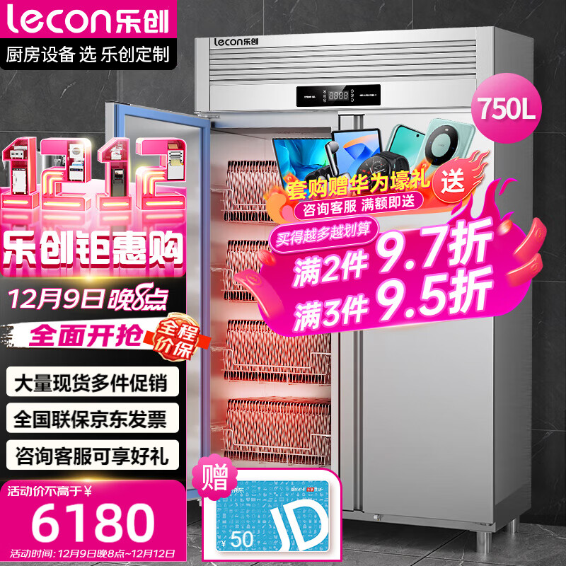 乐创(lecon)消毒柜商用立式高温双开门 厨房餐厅食堂专用 不锈钢热风循环餐盘消毒碗柜 LC-CJ-1600K7价格:6180.00元!