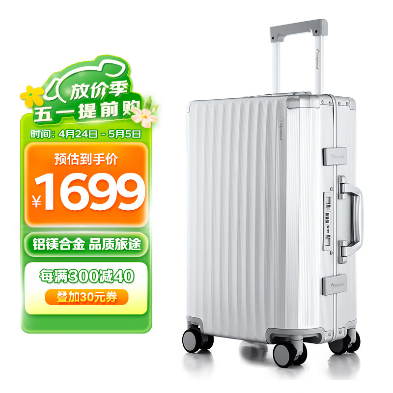 Diplomat外交官行李箱大容量镁铝合金铝框男女旅行拉杆箱TL-25053银24英寸价格:1969.00元!