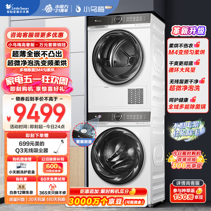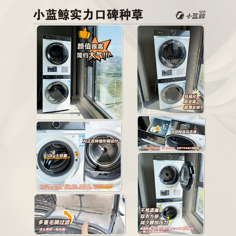 小天鹅(LittleSwan)洗烘套装10KG滚筒洗衣机全自动+热泵烘干机 超薄全嵌 超微净泡【小蓝鲸青春版】TG100VC807+807W价格:9999.00元!