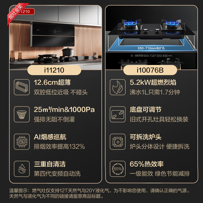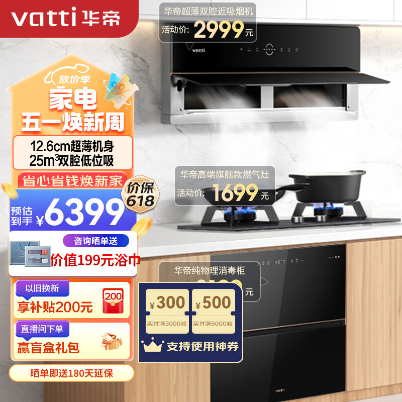 华帝(VATTI)抽油烟机理想家X6变频超薄近吸双腔25风量油烟机灶具消毒柜套装 i11210+76B+3040(天然气)价格:6399.00元!