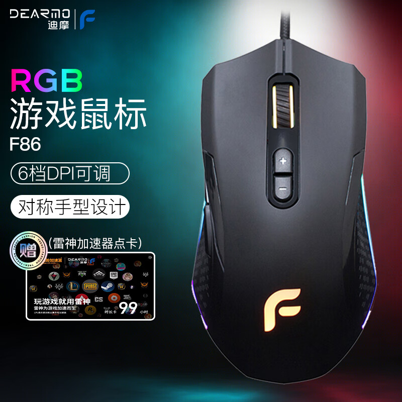 迪摩(DEARMO)F86有线鼠标游戏鼠标电竞鼠标RGB炫彩鼠标笔记本电脑鼠标 黑色 6000DPI价格:199.00元!