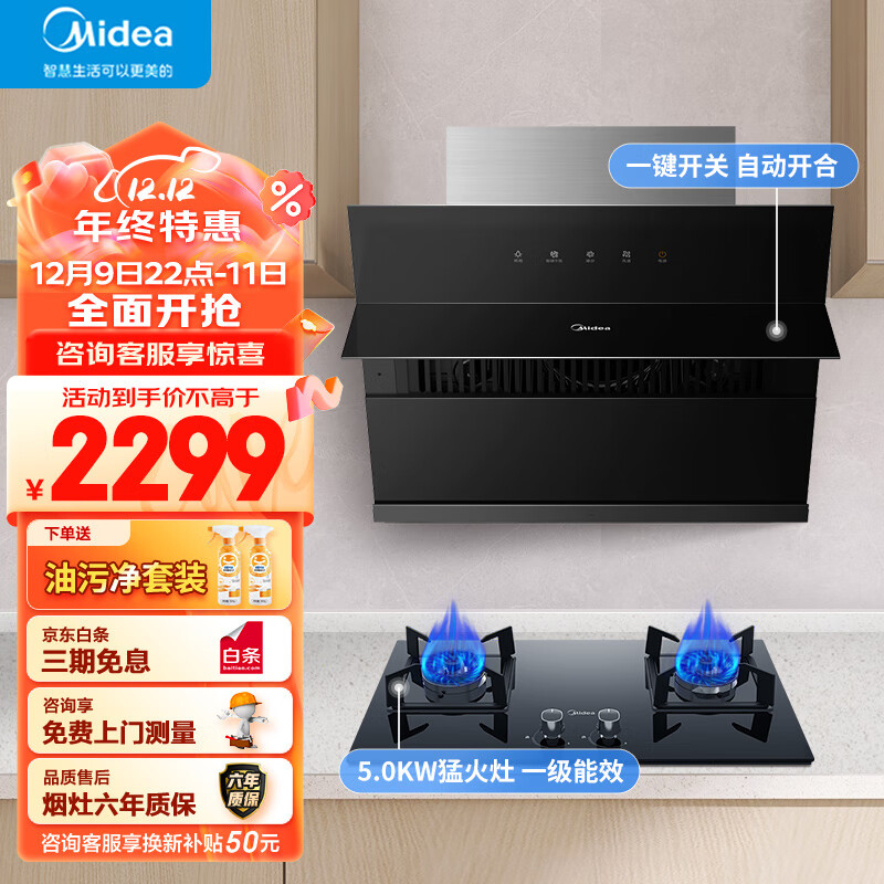 美的(Midea) 烟灶套装 小尺寸抽油烟机侧吸式 家用双灶具 小户型油烟机燃气灶套装 J27+Q330(液化气)价格:2299.00元!