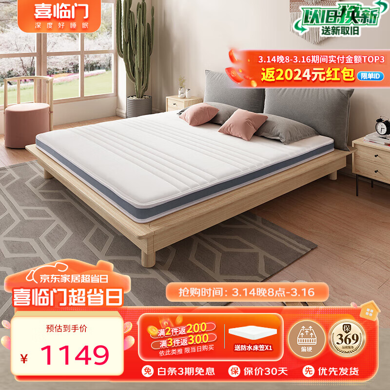 喜临门椰棕薄垫 抑菌防螨 4CM加厚椰棕 偏硬席梦思 伊菲10 2s1.35x2米价格:1149.00元!