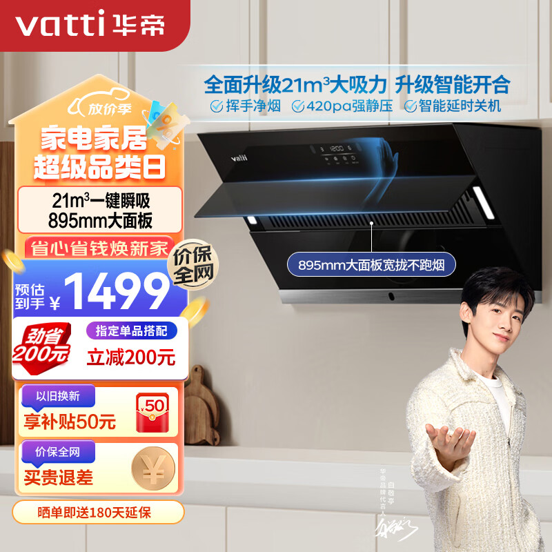 华帝(VATTI) 抽油烟机侧吸式家用吸油烟机小尺寸自动开合 21风量瞬吸大吸力脱排油烟机 i11127S价格:1249.00元!
