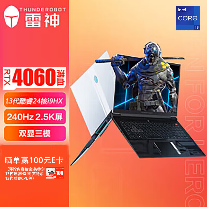 雷神Zero2023 911 16英寸游戏本 笔记本电脑13代酷睿24核i9-13900HX 16G DDR5 512G RTX4060满血 240Hz 2.5K屏 白价格:8699.00元!