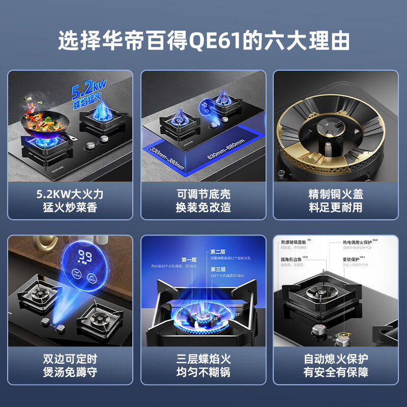 百得(BEST)华帝出品燃气灶 煤气灶双灶 家用炉具 5.2KW大火力 定时灶 嵌入式台式全进风炉具JZT-QE61(天然气)价格:779.00元!