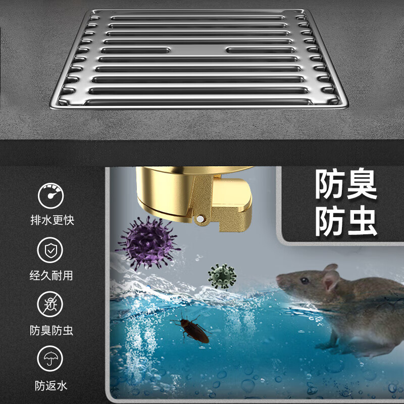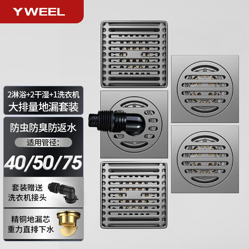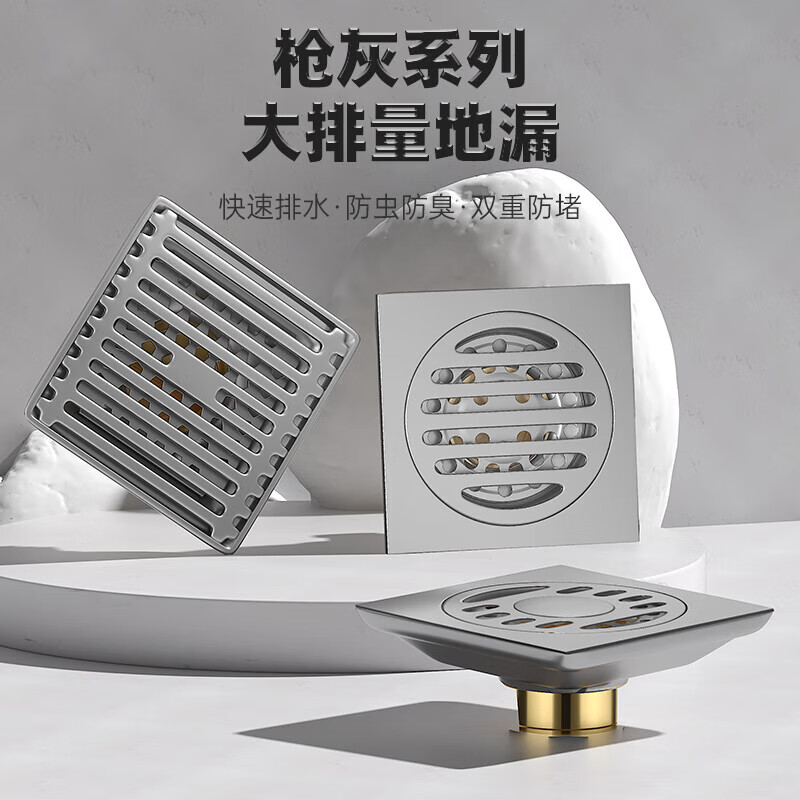 一卫枪灰色地漏卫生间浴室防臭不锈钢淋浴洗衣机厨房下水地漏套装价格:158.00元!