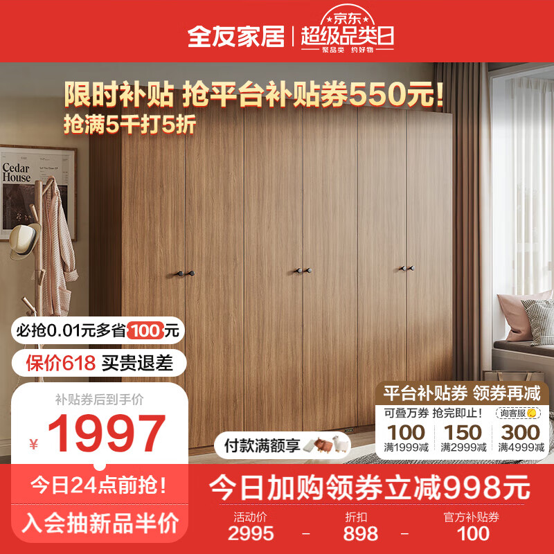 全友家居 二门四门衣柜简约风卧室衣物收纳多规格平开门家具DG10009价格:2995.71元!