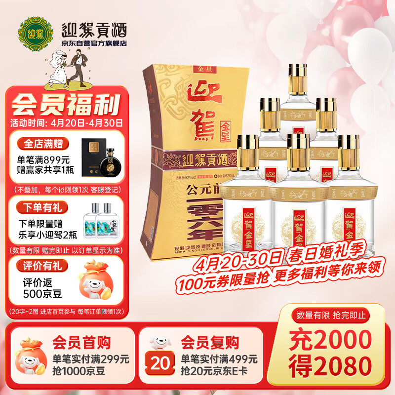 迎驾贡酒 金星 浓香型白酒 52度 520ml*6瓶 整箱装价格:650.00元!