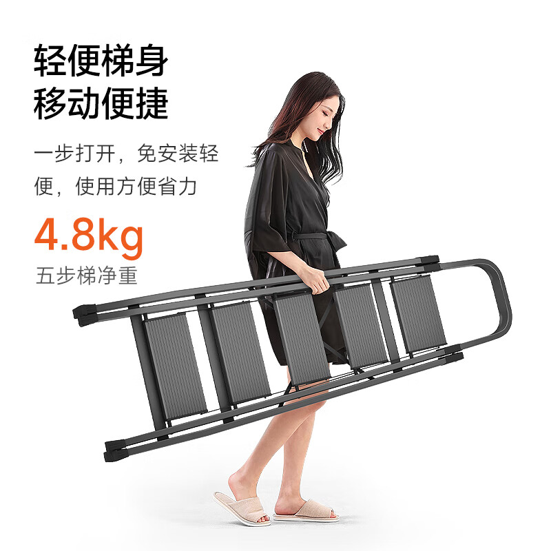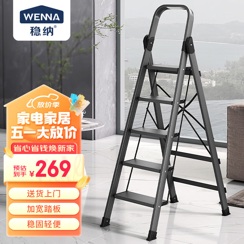 稳纳梯子家用五步折叠梯登高加厚铝合金加固铝梯人字梯工程梯6225S价格:299.00元!