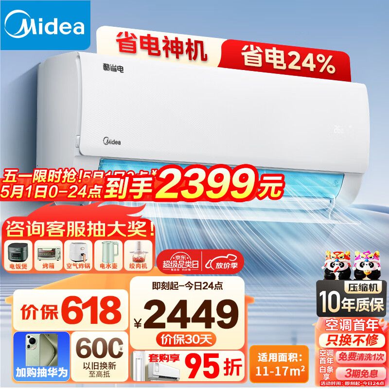 美的(Midea)空调 大1匹 酷省电 新一级能效 变频冷暖 壁挂式空调挂机 智能家电 KFR-26GW/N8KS1-1价格:2399.00元!
