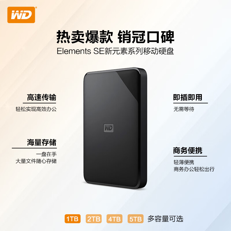 西部数据(WD)1TB 移动硬盘 USB3.0 Elements SE 新元素系列2.5英寸 机械硬盘 手机笔记本电脑外置外接价格:418.00元!