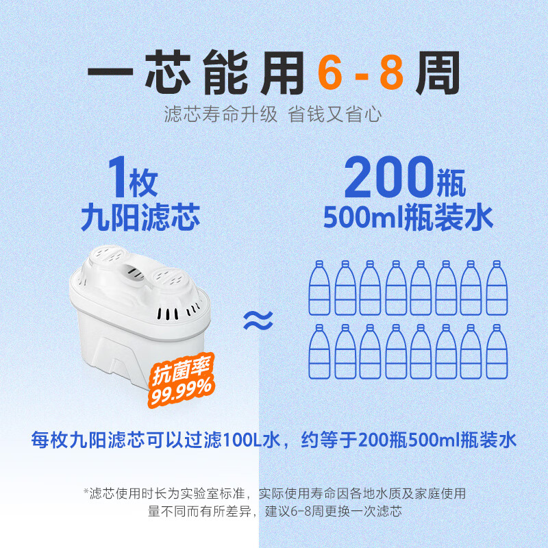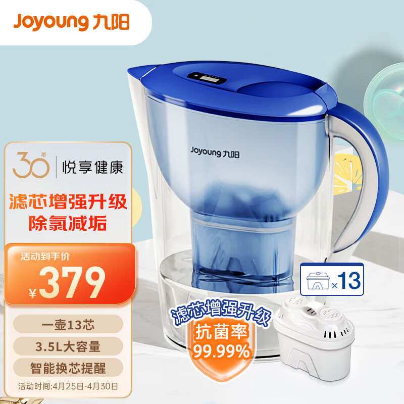 九阳 Joyoung 过滤净水器 家用滤水壶 净水壶 3.5L(蓝色)四重过滤 智能换芯提醒一壶13芯 JYW-B05E价格:379.00元!