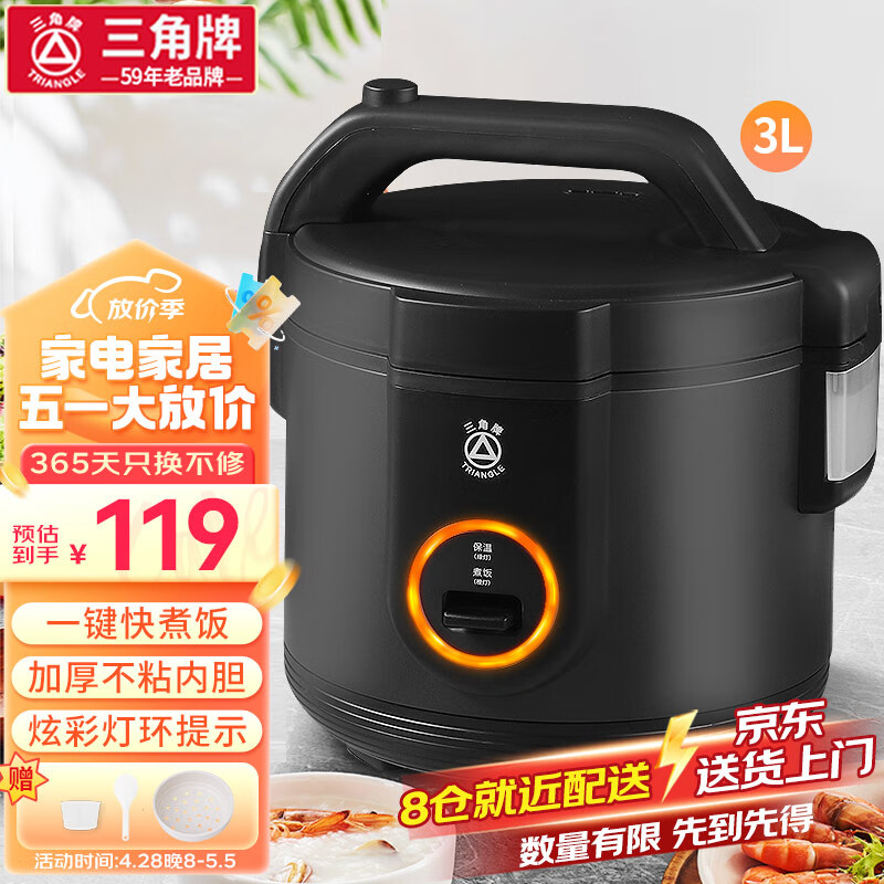 三角牌(Triangle)电饭煲迷你 家用智能大容量蒸米饭锅煮饭锅煲粥不粘西施煲黑色 2-4人用 3L价格:139.00元!