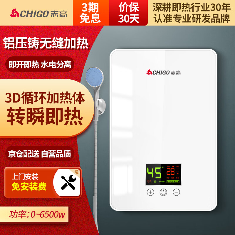 志高(CHIGO)即热式电热水器 6500W快热式小厨宝 即热热水器变频恒温 快速即热 功率可调节 包安装ZG-KB626价格:418.00元!