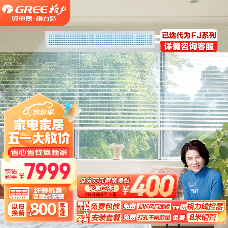 格力(GREE)中央空调 风管机一拖一 3匹家用嵌入式空调 直流变频FGR7.2Pd/C3Nh-N2 京仓派送(一价全包)价格:7999.00元!