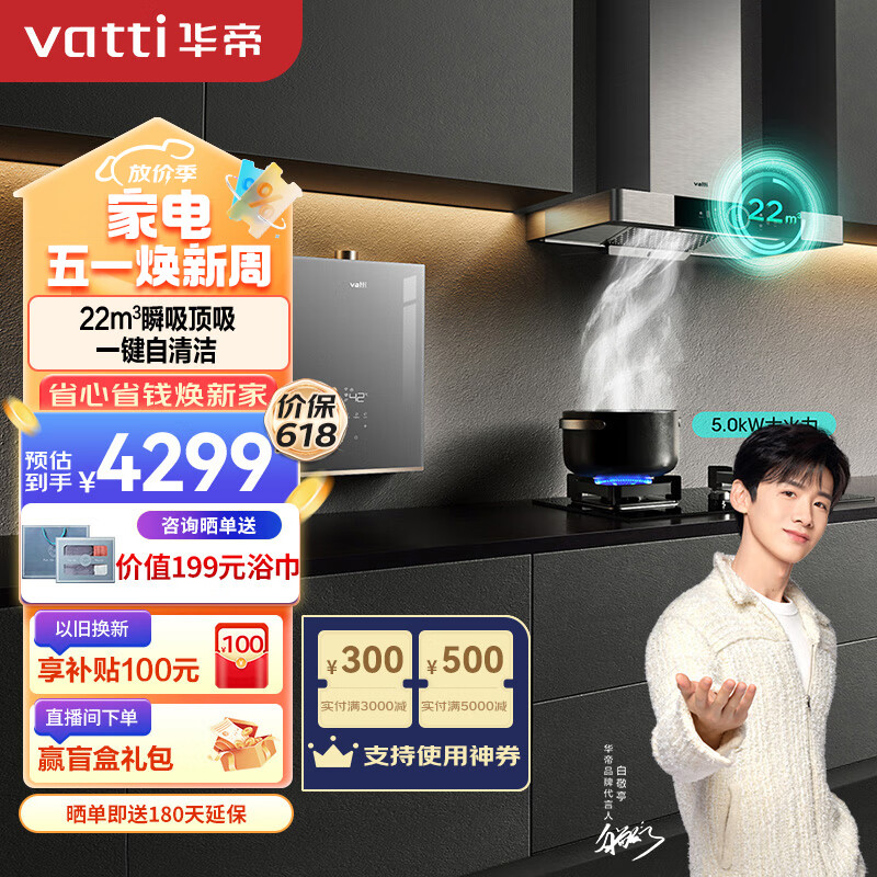 华帝(VATTI)抽油烟机家用欧式油烟机燃气灶具热水器厨房三件套 i11143+72B+152-16(天然气)价格:4299.00元!