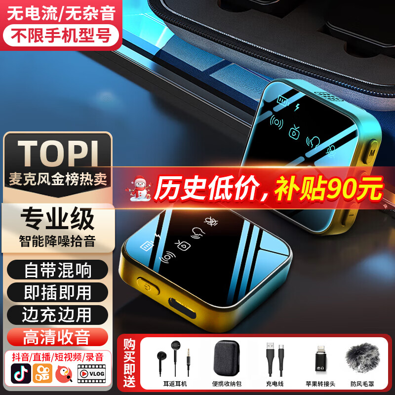 爱百分 专业无线领夹麦克风声卡收音器手机通用直播小蜜蜂户外采访降噪短视频专业vlog混响话筒拍摄录音 高配版【智能降噪+vlog+直播+苹果安卓通用】价格:99.00元!