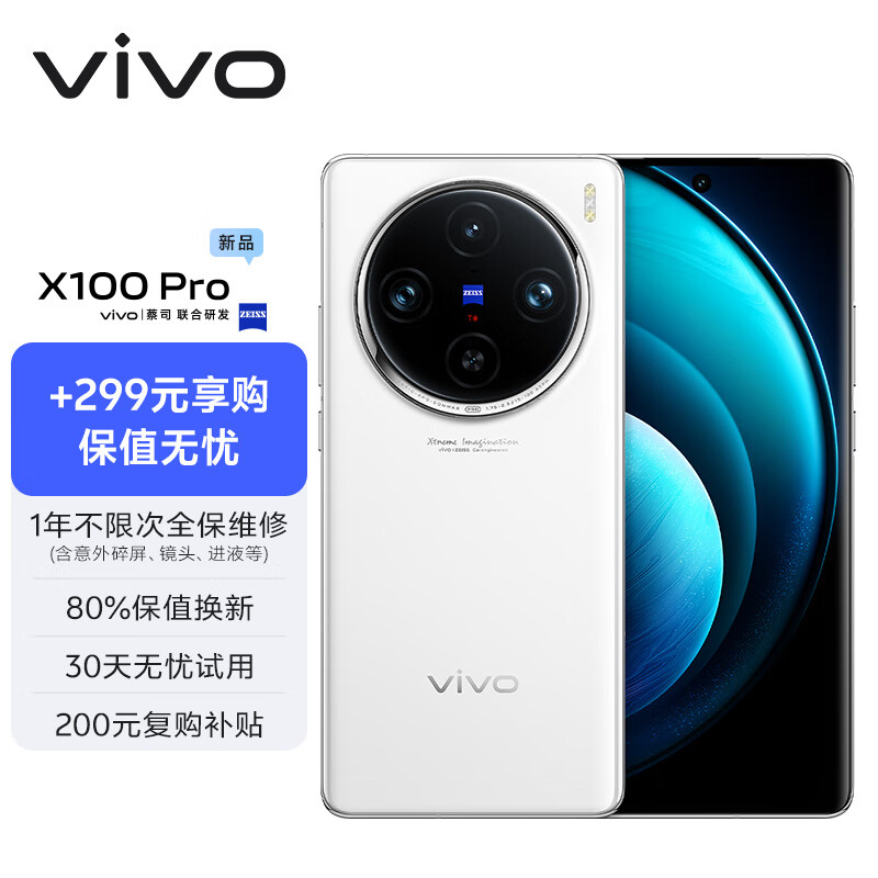 vivo X100 Pro 16GB+512GB 白月光【保值无忧套装】蔡司APO超级长焦 蓝晶×天玑9300 5400mAh蓝海电池 手机价格:5798.00元!