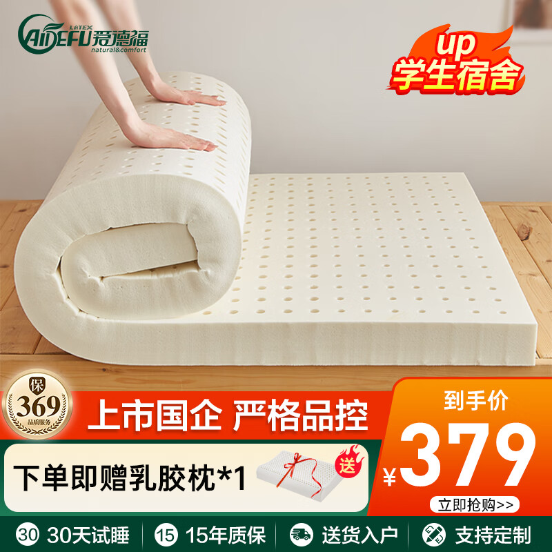 爱德福 乳胶床垫 单人学生宿舍专用床褥加厚0.9m1.2米定制80*200*5cm价格:429.00元!