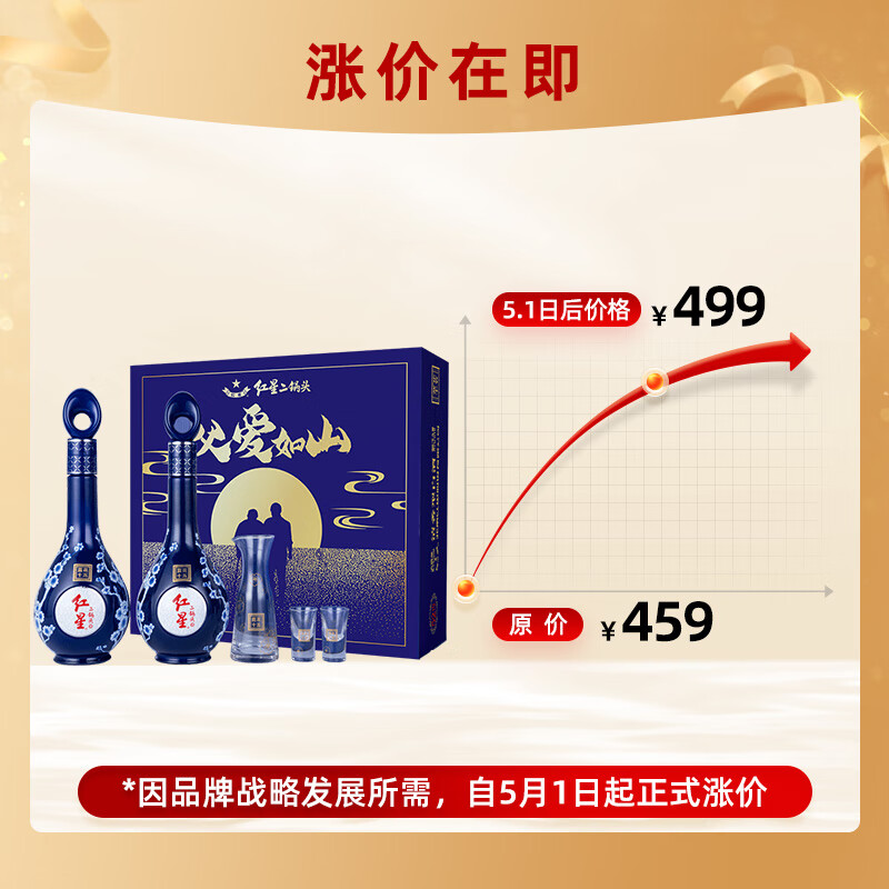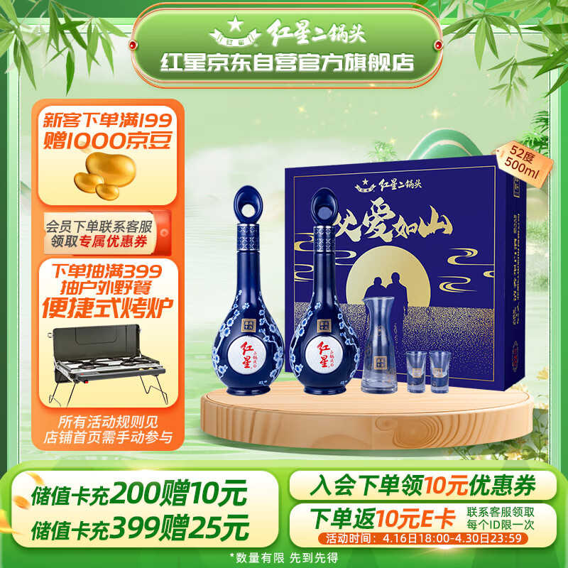 红星二锅头蓝花15 清香型白酒 52度 500ml*2瓶 礼盒装价格:459.00元!
