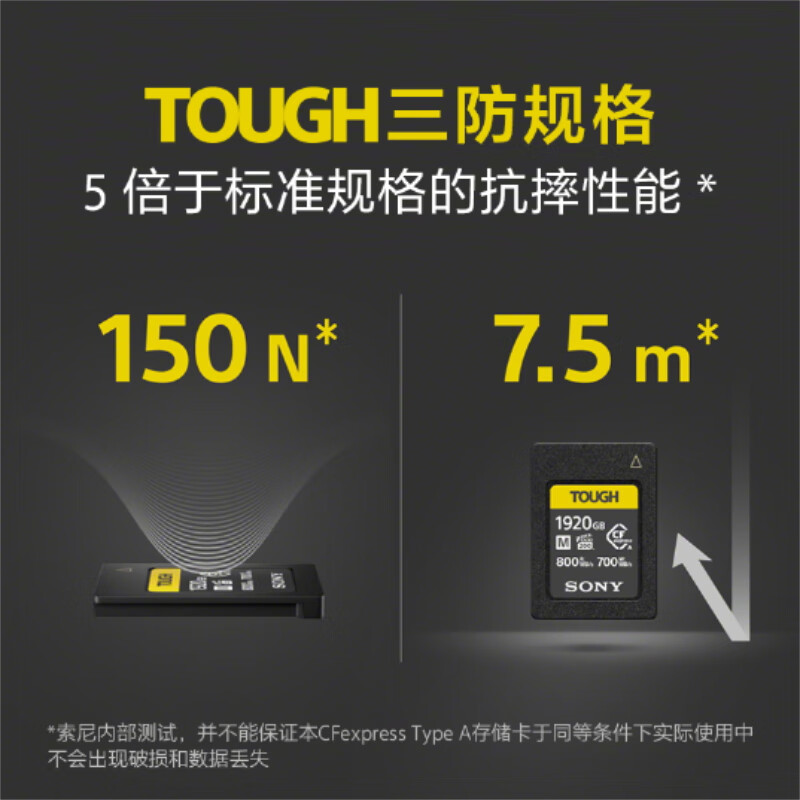 索尼(SONY)1920GB CEA-M1920T CFexpress Type A存储卡读速800MB/s 写速700MB/s CFe三防存储卡 支持VPG200价格:10999.00元!