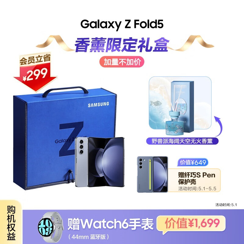 三星 SAMSUNG Galaxy Z Fold5 5G折叠手机 香薰限定礼盒 12GB+512GB 冰萃蓝价格:12999.00元!