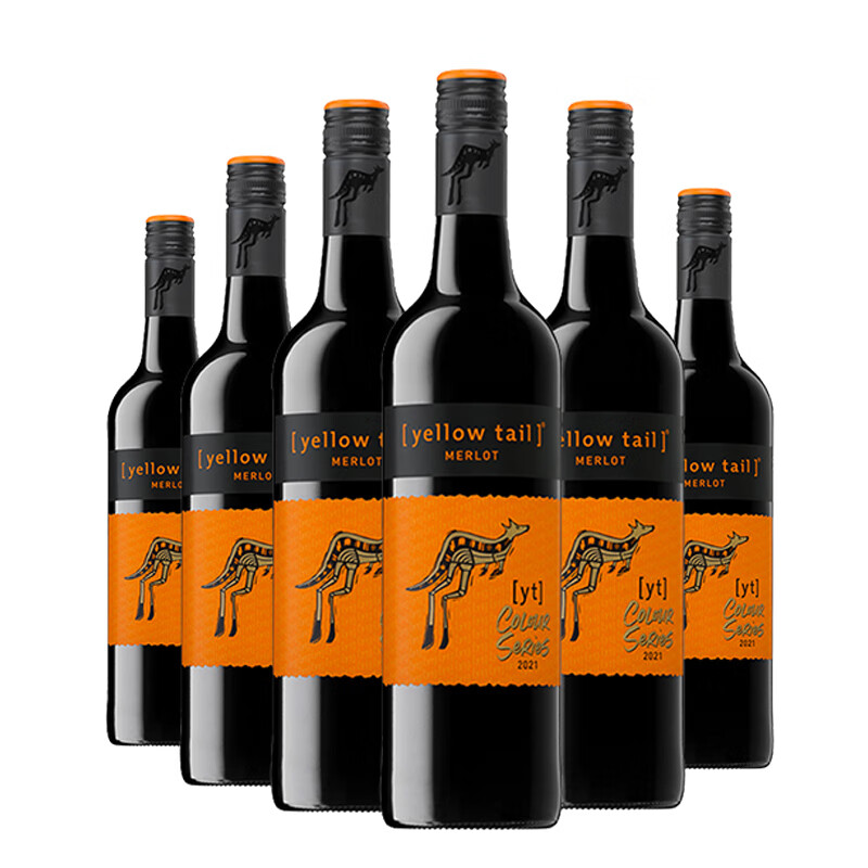 黄尾袋鼠(Yellow Tail)缤纷系列 梅洛红葡萄酒智利版 750ml*6瓶价格:278.00元!