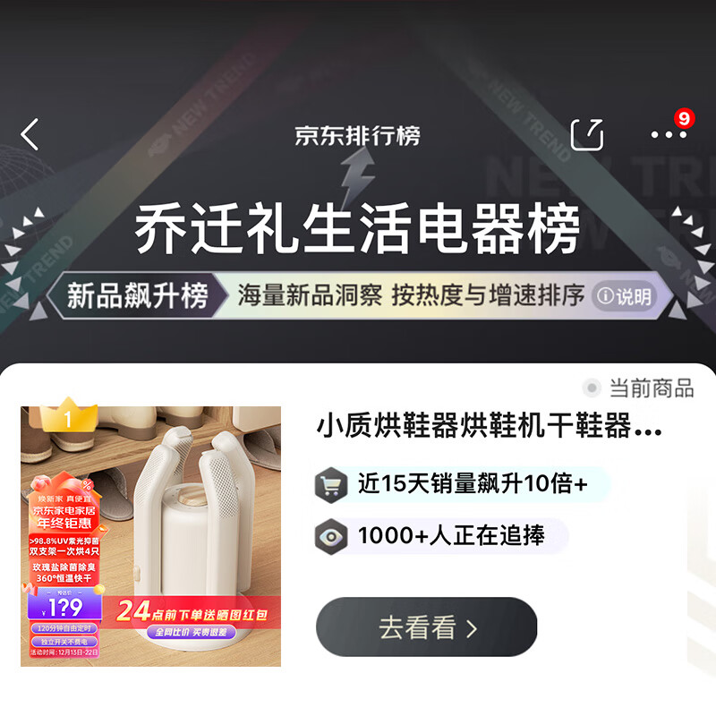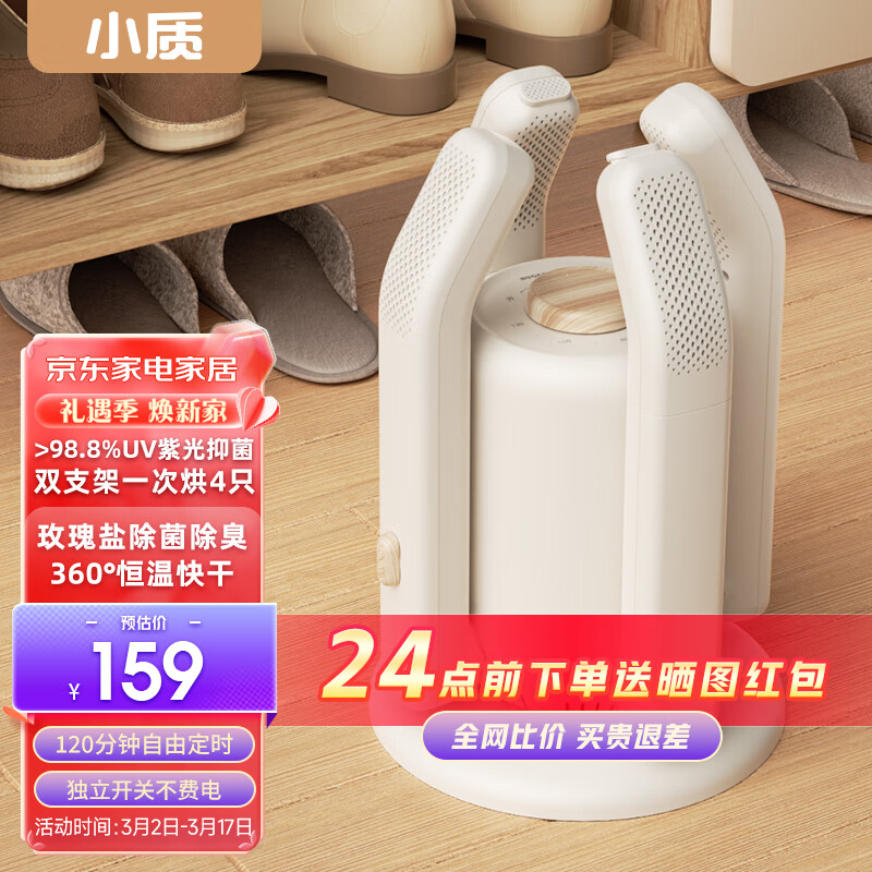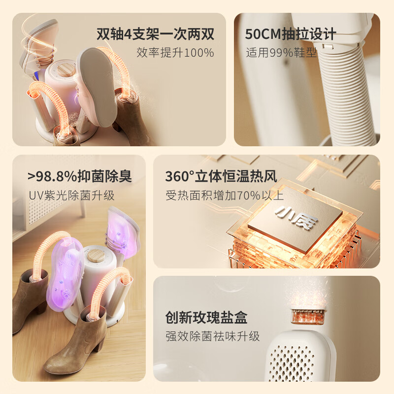 小质烘鞋器烘鞋机干鞋器鞋子烘干器紫光消毒除臭除菌家用烤鞋器可折叠可伸缩 自由定时机械款 可烘两双鞋+360°除菌除.臭+玫瑰盐盒价格:159.00元!