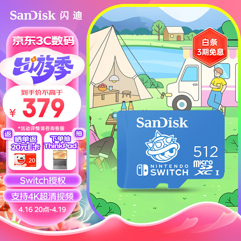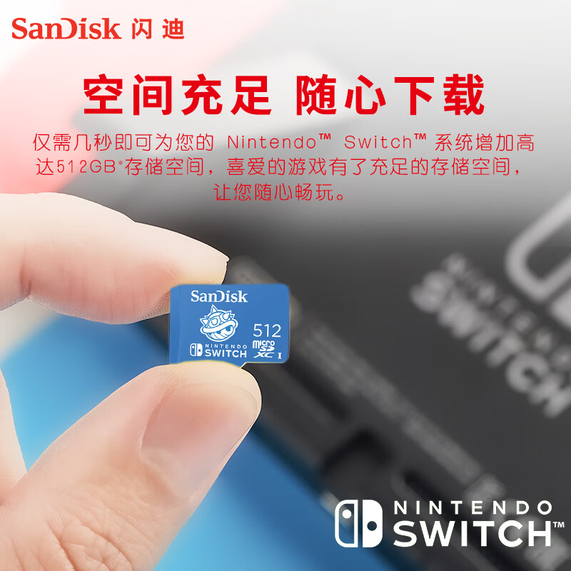 闪迪(SanDisk)512GB TF(MicroSD)存储卡 U3 4K高清视频 读速高达100MB/s Nintendo Switch任天堂授权价格:379.00元!