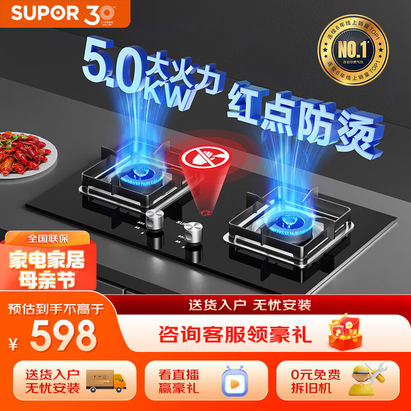 苏泊尔(SUPOR)燃气灶双灶家用 天然气双灶具5.0kW大火力 台式嵌入式两用灶台灶具 QB516A天然气价格:598.00元!