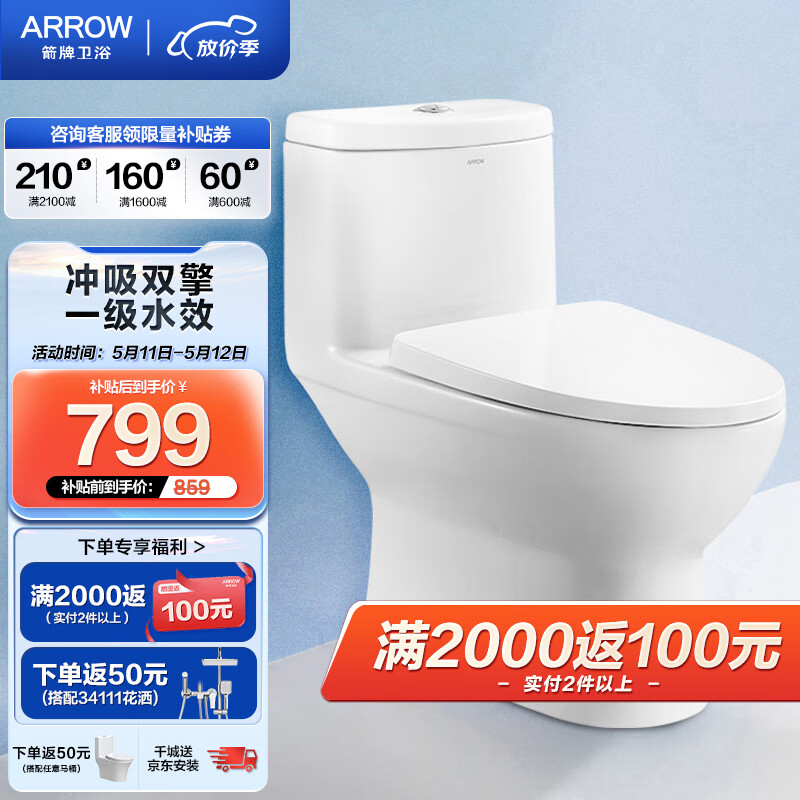 箭牌(ARROW)抽水马桶家用虹吸坐便器小尺寸普通座便 小户型卫生间坐厕AE1126L价格:1049.00元!